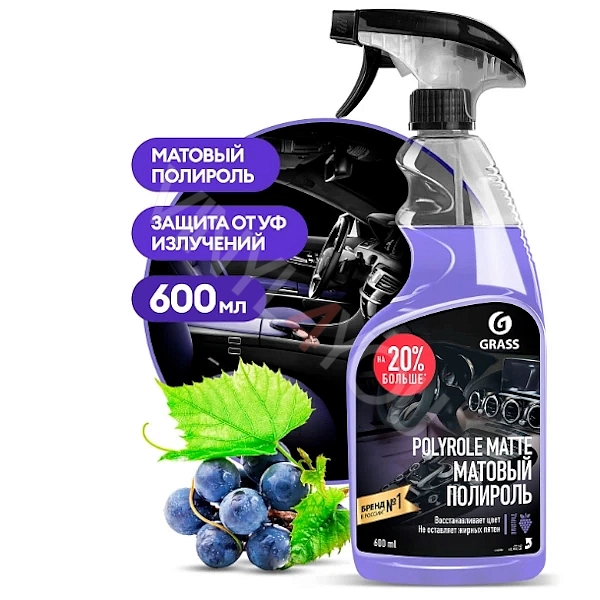 Полироль-очиститель пластика матовый "Polyrole Matte" виноград (флакон 600 мл)